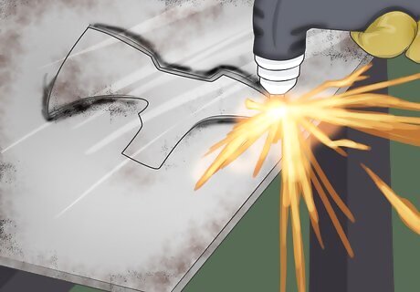 Cut your plate steel. Make sure your plate is affixed to your table with clamps and be mindful of these while using your torch. Do not use clamps that are unable to withstand a considerable degree of heat, as these may melt. Arrange your plate at your workstation so that in cutting you will not damage the surface on which your plate rests.