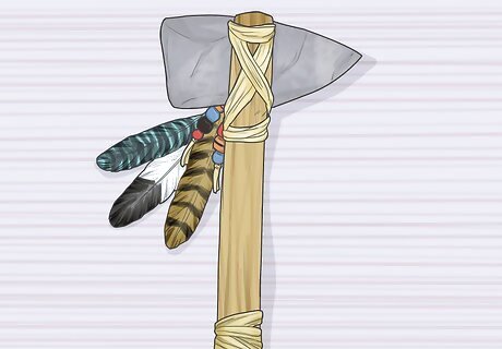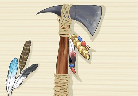 Add finishing touches. Now that your tomahawk has finished drying, feel free to add any personal touches. You may want to add feathers or beads, or maybe even draw designs on the head of your tomahawk.