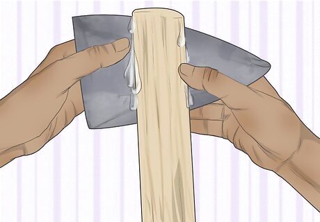 Apply your epoxy. This will help to hold your ax-head in place and make your tomahawk sturdier. Place some epoxy in the slot of your handle. You'll want to keep a rag close by soaked in a solvent, like alcohol, so that any excess or errant epoxy can be cleaned before it discolors your tomahawk.