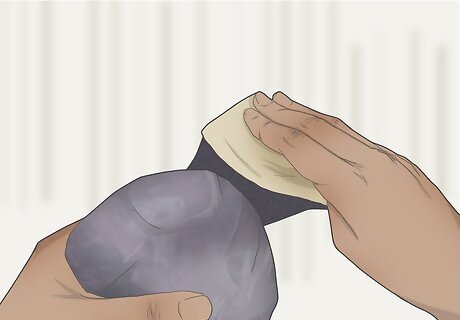 Polish your stone. Depending on the kind of stone you are using, you may need to start polishing with a relatively coarse grade sandpaper. 60 grit is a good starting point. You can use finer grit sandpaper once the hard edges have been softened to give your tomahawk head a finished appearance.