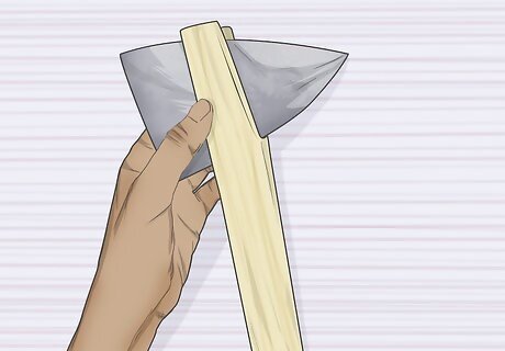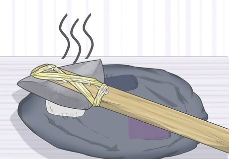 Evaluate your stone and handle ratio. A stone that is too large will be cumbersome and may put too much weight on the handle. While looking for a stone, you will want one that is slightly thicker than that of your handle and mostly flat, without any jagged edges or cracks. The stone and handle will be notched later so that each fits together sturdily. A suitable, sturdy wooden handle can be bought at your local hardware store. Just about any kind of wood can be used in this process, so long as the thickness of the handle is slightly larger in diameter than that of your stone.