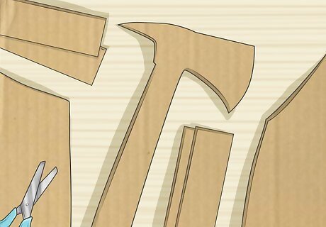Cut your cardboard in the shape of a tomahawk. You should cut two pieces that are the full outline of a traditional tomahawk, including the ax-head and handle. You might want to consider adding support to the handle to make it more sturdy. You can do this easily by cutting 2 additional separate pieces of the tomahawk handle, which you will use later for support. To give a 3D appearance to the ax-head of your tomahawk, you can add a couple of pieces of cardboard cut only in the shape of the ax-head. You might want these to be slightly smaller than the full size ax-head. This will give contour and make it even more realistic.