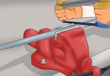 Fashion your handle. Take your metal pipe and cut it down to size with an appropriate metal cutting saw, like a hack saw. The ideal length for your tomahawk will be between 16" and 21" depending on your preference and body type. You should start with a longer handle and give it a try before cutting it down to size. You can always remove more of your handle once you have discovered it is longer than is comfortable.