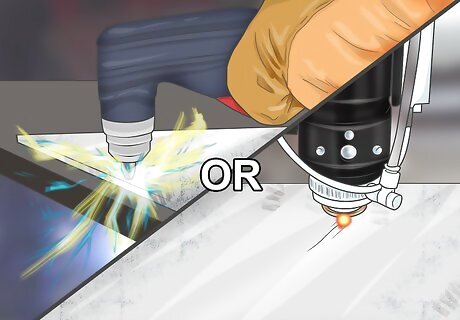 Determine your method of cutting. To cut steel you will need an appropriate metal cutting torch or access to a mild steel cutting laser. If you do not feel comfortable operating a high temperature steel-cutting torch, you should ask your local hardware store about places you might take mild-steel for fabrication.