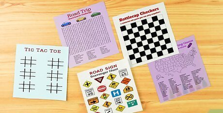 Download travel game templates on the internet. Many websites have a variety of travel game templates you can download and print to use in your activity box. These games include Hangman, I Spy, Tic Tac Toe, Bingo games, Word Searches, Conversation Starters, and more. Search for “travel game templates” via a web browser and download the templates that interest you. If you’d prefer, you can use the game templates found online to create your own templates using word processing or spreadsheet software.