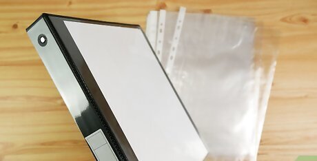 Put 1 or 2 game templates in a plastic sheet protector. Sheet protectors are designed to go inside binders, as they already have 3 holes for the binder’s rings. Plus, dry erase markers can be wiped off the outside of a sheet protector as it’s made of plastic. Each sheet protector can include 2 games; one facing forward and the other facing backwards. If you’ve included games that can only be played once, you don’t need to put them inside a sheet protector.