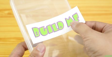 Print labels with names or activities for each box. You can create the box using one of two methods: by game or by child. Either way, you’ll need a label for each box so that your kids know what’s inside and/or who the box belongs to. The easiest way to create a label is to print one from your computer using a word processing program. Alternatively, you could also use a label maker if you have one. For game-specific boxes, labels may include “Build Me,” “Colour Me,” or “Play Me.” For child-specific boxes, the labels should include at least the child’s name, but could also include the name of the trip you’re taking (e.g., “Drive to Gramma & Grandpa” or “Summer Vacation to Mexico”).