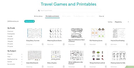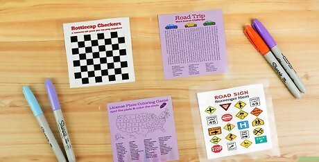 Print a variety of travel game templates from your computer. Use an internet browser to search for “travel game templates.” Download the templates that interest you and are appropriate for the ages of your children. You can also make your own travel games using word processing or spreadsheet software if you want. Alternatively, you can purchase a game or puzzle book from the book store or dollar store and cut/tear the pages out.