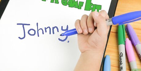 Laminate each game template for durability. For games that are intended to be played over and over again, you’ll want to laminate the template so that your kids can use a dry erase marker to play the game. You can use a home laminator if you have one, use a laminator at the library, or take your items to a print shop and have them laminated. As yet another alternative, you could place the paper inside a plastic sheet protector. If the sheet protector is too large for the paper, you can cut the sheet protector to an appropriate size and tape around the open edges.