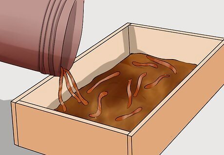 Add about 2 pounds (0.9 kg) of red wiggler worms to the top of the worm bed.