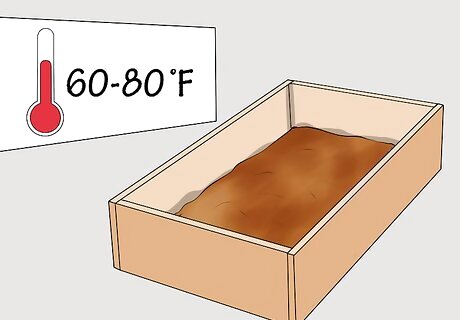 Place the worm bed in a dark area that is between 60 to 80 degrees Fahrenheit (15 C to 27 C). Your worms can tolerate temperatures as low as 40 degrees Fahrenheit (4 C) and as high as 90 degrees Fahrenheit (32 C).
