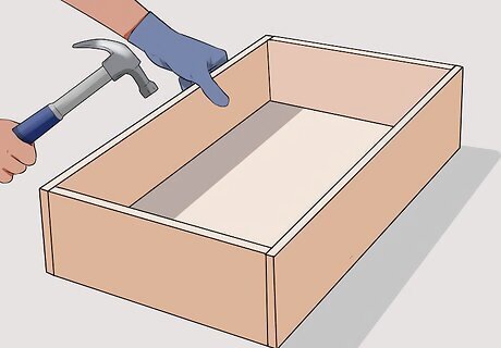 Hammer nails into the plywood to join the 2 boards. When you're finished, you will have created the bottom of your worm bed and its 2 narrow sides.