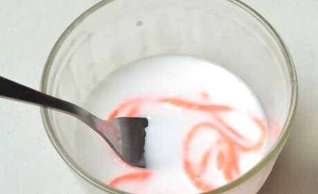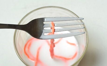 Dip your first piece of yarn into the glue. Use a fork to swirl it around, making sure that it gets evenly soaked.