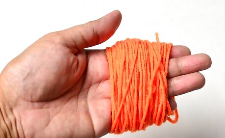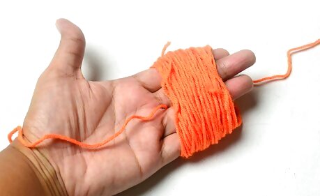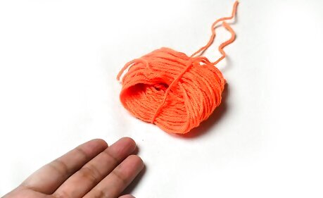 Wrap some orange yarn around your hand about 120 times. Hold your hand out flat with your fingers together. Wrap the yarn around your fingers about 120 times. Be sure to wrap loosely so has not to cut off blood circulation. Choose plain, medium or worsted-weight yarn for this.