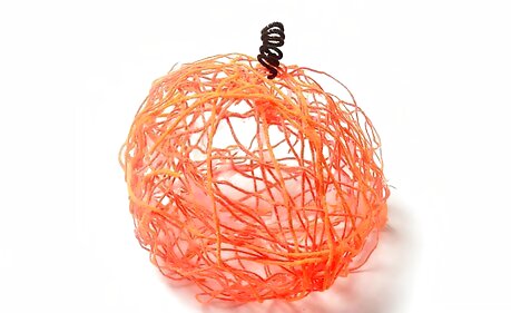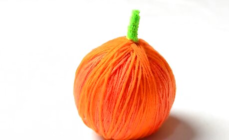 Fluff up your pumpkin and neaten it up. Once again, do not cut the loops of yarn apart. Instead, manipulate them with your fingers so that they are evenly spread around the stem, creating a squashed, pumpkin-like shape. At this point, you can cut the loose ends of the short piece of yarn off. Alternatively, you can tie them to a long piece of twine to make a garland.