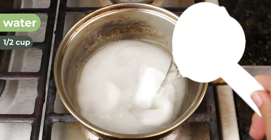 Make a sugar syrup by heating 1 part water and 1 part sugar. Mix 1/2 cup (50 g) of white sugar with 1/2 cup (118 mL) of water and heat in a saucepan over medium heat. Stir until the sugar completely dissolves, creating a completely clear mixture. Then, let it cool to room temperature.