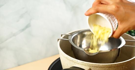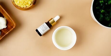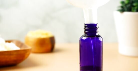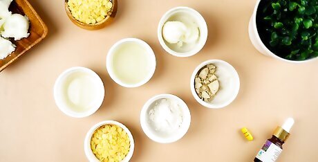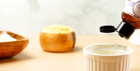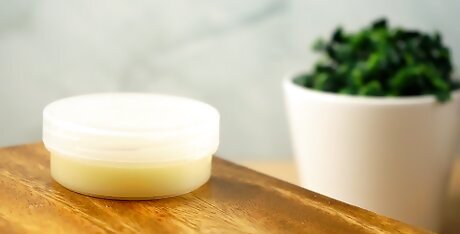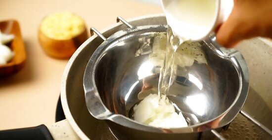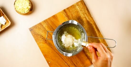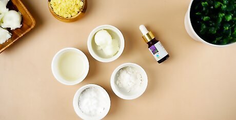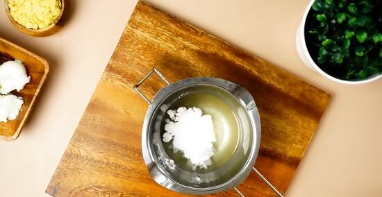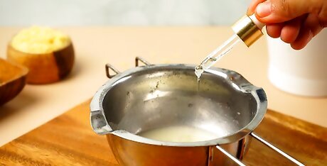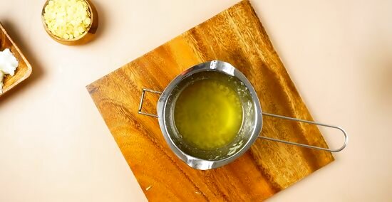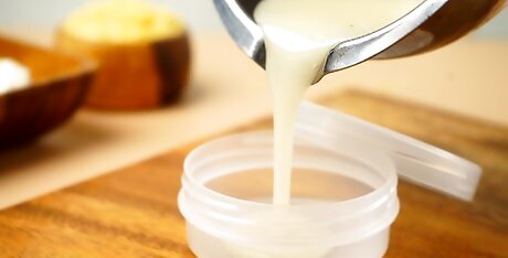 Melt the coconut oil, Shea butter, carrier oil, and beeswax together. If you have a double boiler, you can use it to melt these ingredients together, or you can simply place all of them in a heavy, heat-safe jar and place the jar in a pan of boiling water. Use low heat and stir everything in evenly. The beeswax will take the longest to melt, but have patience.