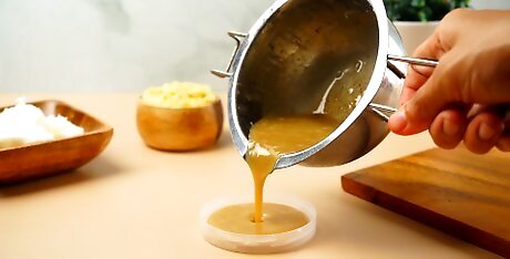 Stir in the arrowroot and baking soda. After you turn off the heat, slowly stir in the arrowroot and baking soda. Mix the ingredients in well but quickly before the mixture begins to harden.