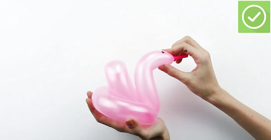Pinch the long portion to create the head. Grasp the neck a few inches from the tail and use your hand to move some of the air into the uninflated tail part. This will cause the top of the neck to curve into the shape of the head. The remaining uninflated tail forms the swan's beak. Use a marker to give your swan eyes if you’d like to.