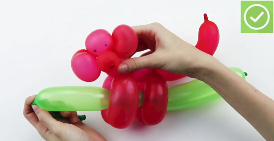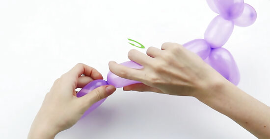 Twist the leg segments together. Fold the balloon at the twist between the 2 leg segments. Grasp the leg segments with your free hand and twist them together 3 times at the base of the neck. The legs and neck are now locked in place, so you can let go if you need to.