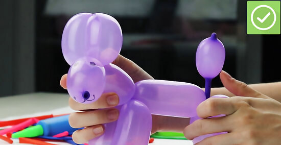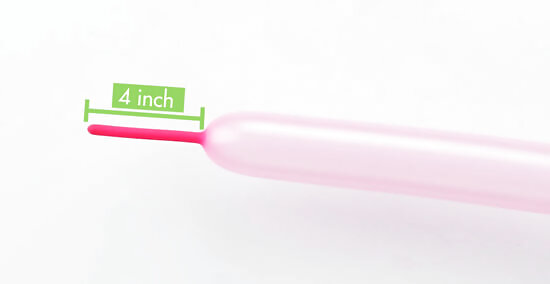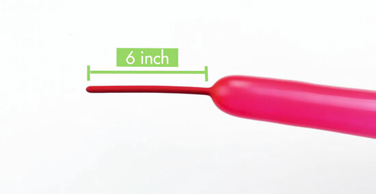 Inflate the balloon and leave a 6 in (15 cm) tail at the end. Leaving a shorter tail might result in the balloon popping halfway through the sculpting process, so make sure you have plenty of uninflated balloon at the end. Tie off the balloon with a knot.