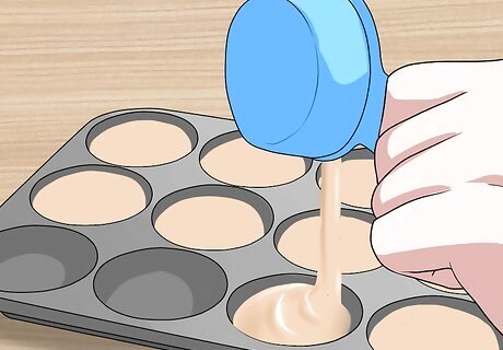 Grease a cupcake pan with cooking spray or oil. This is so that your treats don't stick to the pan. By greasing the pan, you make sure they don't break apart when you take them out of it.