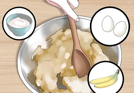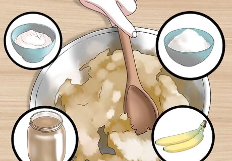 Combine the yogurt, mashed bananas, and peanut butter in a large bowl. Make sure to mix your ingredients well. This will make sure that your dog isn't getting too much of one thing. Peanut butter is great for dogs, but in small doses.