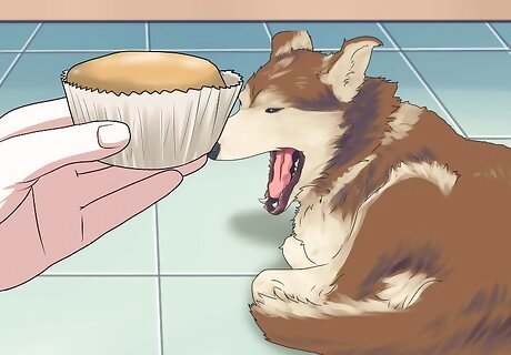 Remove the treat from the cup when giving it to your dog. Your dog might eat the cup. The treat should pop out if you just squeeze it. But if you're having trouble, just tear the cup away.