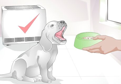 Feed your dog in a warm, dry place. Cold and wet environments can trigger joint pain. It's a good idea to feed an arthritic dog in an area of your home that's dry and warm. Avoid areas near doors or windows, as these can cause drafts.