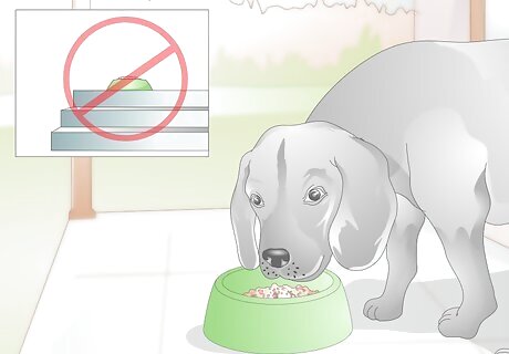 Make sure your dog has easy access to their food. Arthritic dogs have trouble getting around. Therefore, it's important you keep your dog's food low to the ground in a spot your dog can easily reach. Avoid putting the food in a room that must be accessed via stairs or ledges. Arthritic dogs have trouble getting up and down stairs. Make your dog's food easily accessible, so they never have to walk long distances to eat. Try setting up regular feeding stations or keeping their bed in the same room as their food.