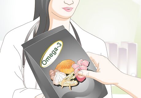 Talk to your vet about foods that provide omega-3 fatty acids. Omega-3 fatty acids can help reduce inflammation and prevent cartilage damage associated with arthritis. You should seek a dog food that's rich in omega-3 acids to help your dog feel more comfortable. Talk to your vet about the right kind of diet for your dog. Many dog foods are enhanced with omega-3 acids. The omega-3 acid eicosapentaenoic acid (EPA) is particularly helpful in treating dogs with arthritis, so ask your vet about a dog food rich in EPA.