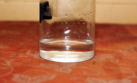 Fill a bottle with warm water and set it aside for a minute. The safest way to make fog in a bottle is to simply use ice cubes and warm water. To start, fill a bottle with warm water. The water does not need to be boiling. Just try to run tap water as hot as it goes. Fill the bottle to a little below the brim and set the bottle aside for 60 seconds. Fog is formed when warm water vapor comes into contact with cold temperatures. By heating up the inside of the bottle with hot water, you are creating warm vapor inside the bottle.