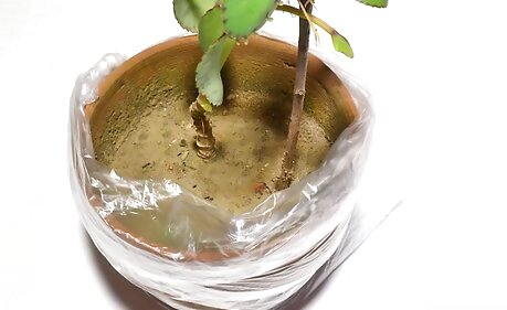Fold or roll the top edge of the bag down. Keep folding or rolling until the bag is the right height for your plant. How thick you make the rolled or folded band depends on the size of the bag. The smaller the bag, the thinner the band should be. The larger the bag, the thicker the band should be. Don't worry if the bag rips or tears at first.