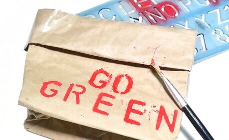 Consider adding a stenciled design. You can always leave you planter plain if you'd prefer, but a simple word, phrase, or image would look quite charming. Choose a spot for the stencil, then flatten the bag. Place a stencil over the bag, then apply some acrylic paint over it. Use a foam brush and a dabbing/tapping motion. Lift the stencil away, then let the paint dry. If you have neat handwriting, you can write the word using a paint pen instead. If you used colored contact paper, try to match the paint to it.