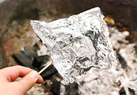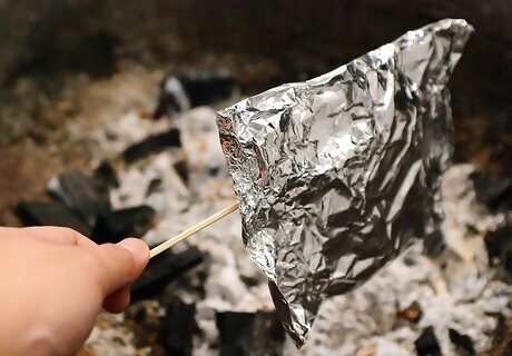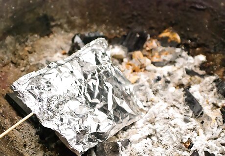 Build your campfire in clear area away from trees and buildings. Allow the fire to burn until hot embers form.