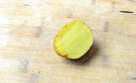 Cut a large potato in half. Do not peel the potato; this way, your fingers won't get wet as you use it. Keep in mind that you will not be able to rinse these stamps. If you want to use more than one color for a certain shape, you will need to make a new stamp using a new potato for each color that you wish to use.