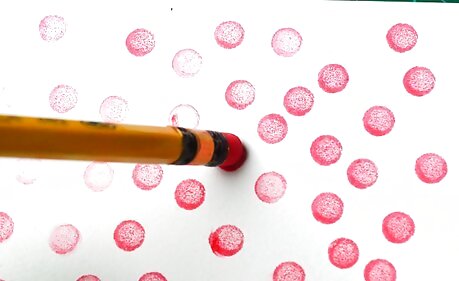 Use a pencil eraser and an ink pad to create a simple polka dot design. Get a brand-new pencil with an unused eraser. Press the eraser into an ink pad, then tap the eraser against a sheet of blank wrapping paper. Do this over and over to create a polka dot design.