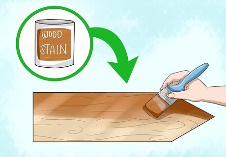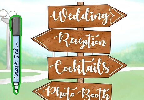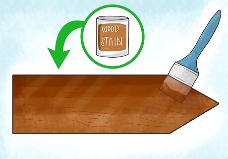 Color the wood using a wood stainer. Put on rubber gloves before handling a commercial wood stainer. Stir the stainer with a brush, then paint it onto the wood. Go over the entire surface in short, even strokes. Stainer gives wood a dark, refined color that goes well with the lighter colors prevalent at weddings.