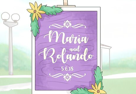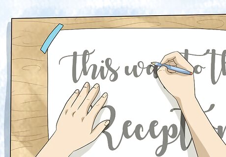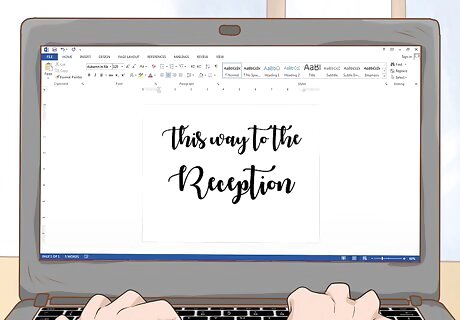 Create your design on a word processor. Choose a classy font from the drop-down menu and type out the words you want to appear on your sign. Use the size settings to make the words as large as you need them to be on your sign. For more space, try flipping the page to landscape mode using the settings tab in the upper-right corner of the screen. Make the font big, since people will be reading your sign from afar.