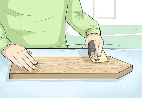 Sand the wood with 120 to 180 fine-grit sandpaper. All you need is a single piece of fine-grit sandpaper. Lightly rub down the entire board. It should feel smooth to the touch. If you notice any rough spots, go over them with a 60 to 80 medium-grit sandpaper, followed by the fine-grit sandpaper.