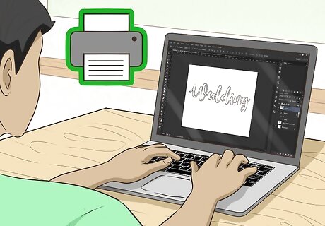 Print out the design components on paper. For smaller signs, you may be able to print the whole design in 1 document. If you are short on space, break the design into smaller pieces. Print it 1 word at a time so the design looks as big and impressive as it needs to be for a wedding. To print 1 word at a time, move the other words to separate word processor files. Then print each file. If you print words together in the same document, leave a few spaces between them. You may cut the paper to separate the words, making them easier to arrange.