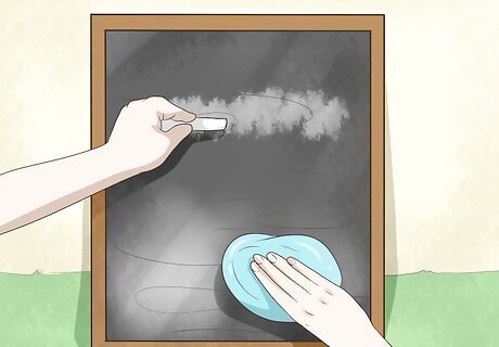 Rub chalk over the sign to protect your sign. In order to protect the chalkboard once you've painted it, rub a piece of chalk until you've completely covered the sign's surface. Then, simply remove it with a clean rag, and your sign is ready! You can repeat this every time you erase your chalkboard for a longer lasting sign.