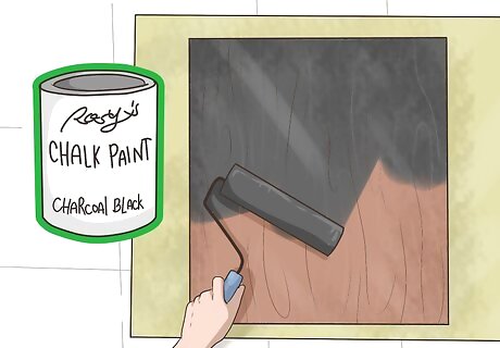 Paint the sign with a roller and chalkboard paint. Pour the paint into a tray and load it onto the roller. Then go over the sign once to coat it. Cover the entire sign, applying the paint as evenly as possible.