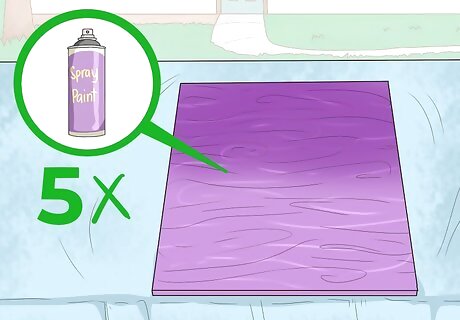 Paint the sign again up to 5 times. Spray painting typically means a few coats of paint. Go over the sign once, then wait at least 5 minutes for the paint to dry a little. Repeat until the sign's coloring looks smooth and even.