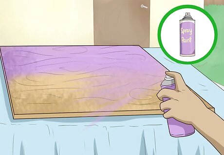 Spray paint the sign with a background color. Plywood is the main choice for sign material, although other surfaces work too. Pick up a can of spray paint in a color that is pleasant as a background, such as black. Working in a well-ventilated area, spray the paint across the wood in short, even strokes.