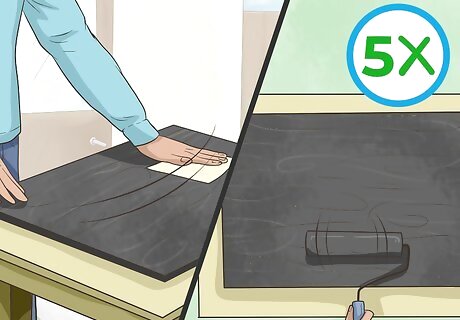 Repeat painting and sanding up to 5 times. Roll on another layer of paint, then let it dry for another 2 hours. The trick is to get the paint to look thick and even. You shouldn't be able to see any wood once you're finished.