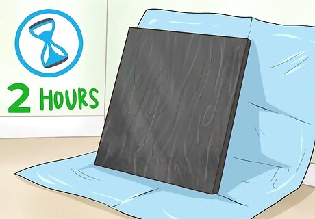 Wait about 2 hours for the paint to dry. Read the manufacturer’s instructions on the label to find out how long to wait. The paint should become dry to the touch within 2 hours. Avoid waiting longer, or else the paint will settle completely.