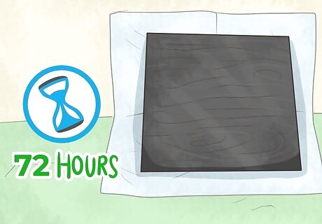 Dry the sign for 72 hours. Set the chalkboard sign aside for a few days. Make sure it's in a location where it won't be disturbed by an accidental passerby, pet, or the elements. If your sign is ruined while it's drying, you can simply paint and sand it again!