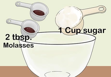 Measure sugar and molasses into a mixing bowl. Pour 1 cup (200 g) of granulated sugar into a mixing bowl. Add molasses according to your taste or the type of brown sugar you want. For light brown sugar, use 2 tablespoons (40 g) of molasses. For dark brown sugar, you can use up to 1/4 cup (84 g) of molasses. Ensure that you're using true molasses, not blackstrap molasses. Blackstrap molasses is more refined, less sweet, and higher in sodium than true molasses.