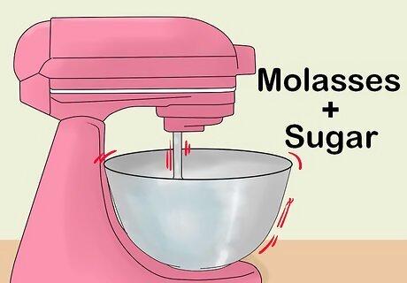 Combine the molasses and sugar in a mixer. For the best texture, use a stand or electric mixer to combine the molasses and sugar until the mixture looks fluffy and golden brown. This can take several minutes. You can also mix the brown sugar by combining the ingredients in a food processor.